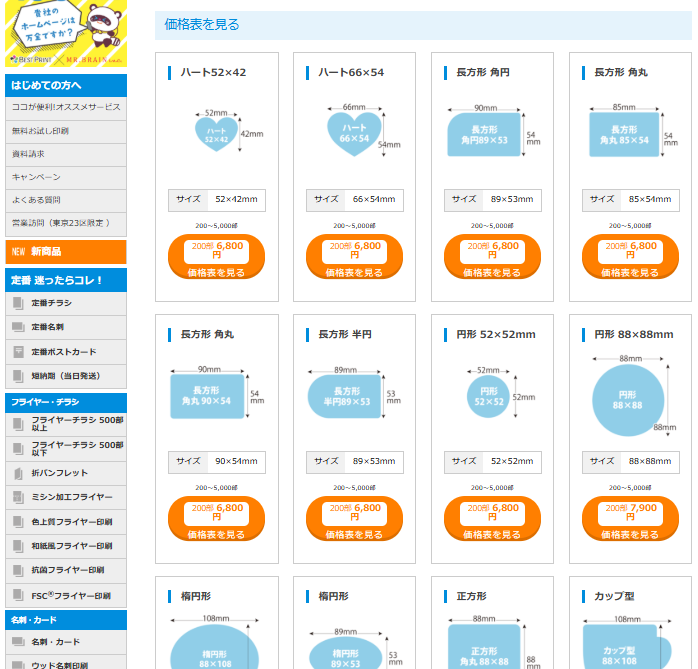 ベストプリントではあらかじめ多数の型が用意されているため、型代の加算なしで特殊形状のカードを作ることができます。